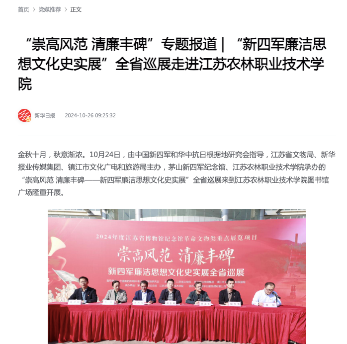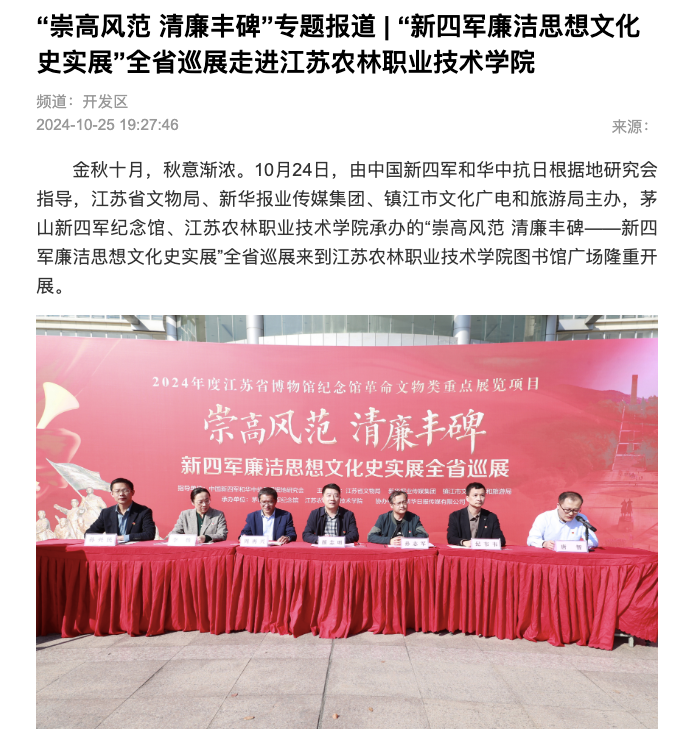 【人民日报党媒公共信息平台】“崇高风范 清廉丰碑”专题报道 | “新四军廉洁思想文化史实展”全省巡展走进77779193永利官网